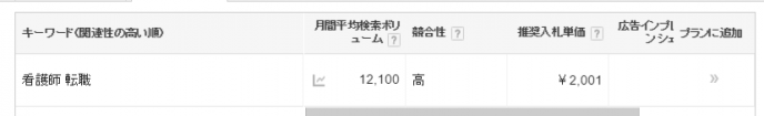 ちなみに、当日(16/04/22)に「看護師 転職」のキーワードで見てみると、1クリック2001円!!